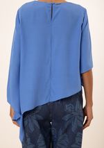 Blusa Maria.Valentina Solta Decote Careca Manga 3 Quartos Padrão Azul