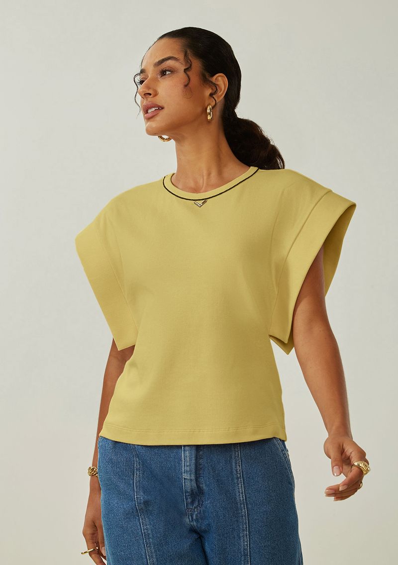 FemininoRoupasBlusasBlusa Maria.Valentina Solta Decote Careca Manga Curta Padrão Amarelo