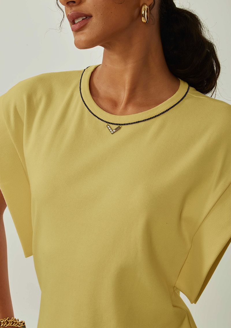 Blusa Maria.Valentina Solta Decote Careca Manga Curta Padrão Amarelo