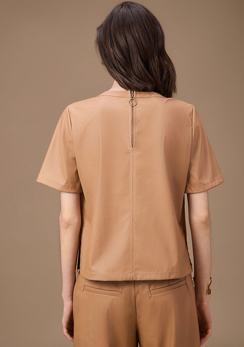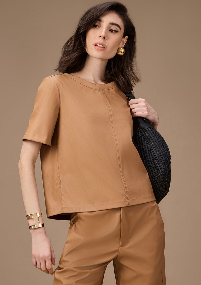 OUTLETFemininoRoupasBlusasBlusa Maria.Valentina Solta Decote Careca Manga Curta Padrão Marrom