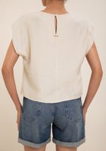 Blusa Maria.Valentina Solta Decote Careca Manga Curta Padrão Off White