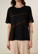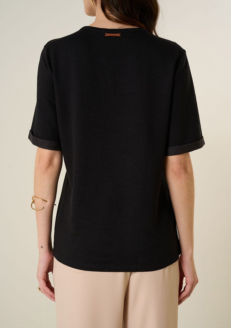 Blusa Maria.Valentina Solta Decote Careca Manga Curta Padrão Preto