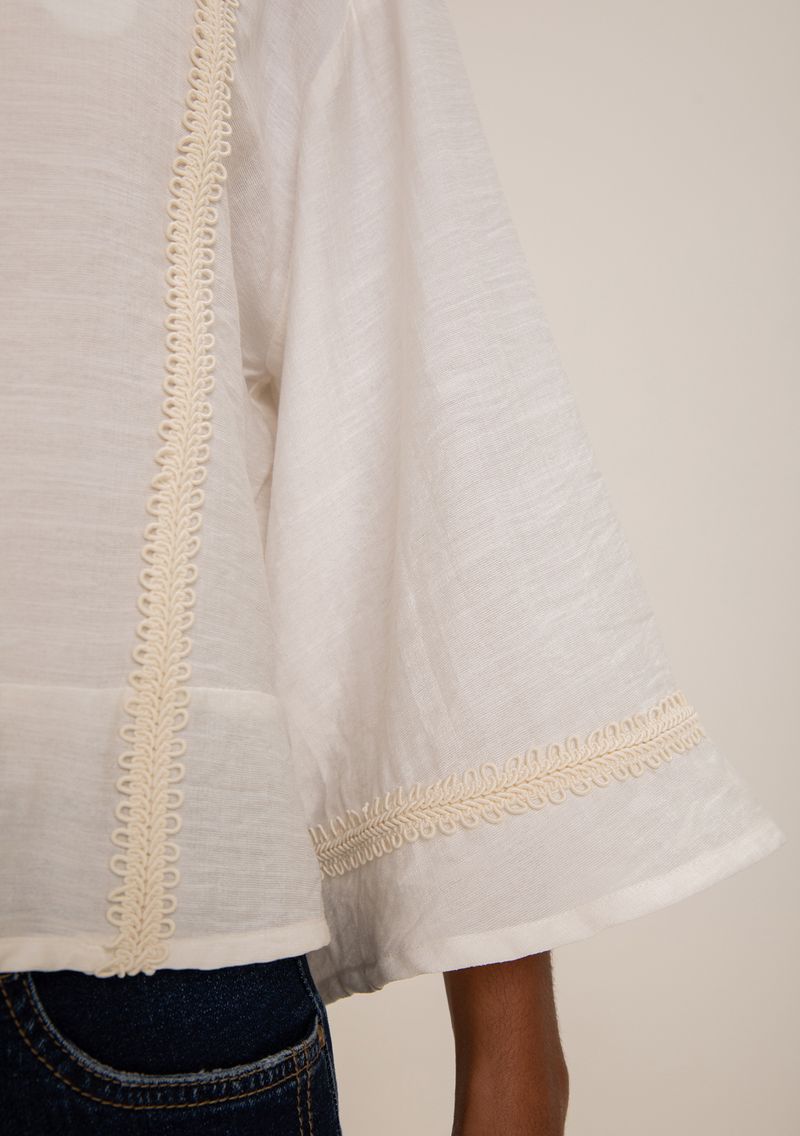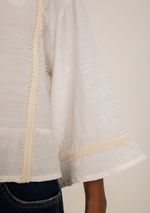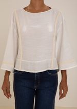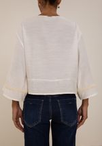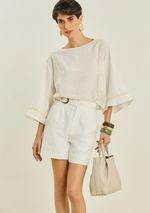 Blusa Maria.Valentina Solta Decote Careca Manga Longa Cropped Off White