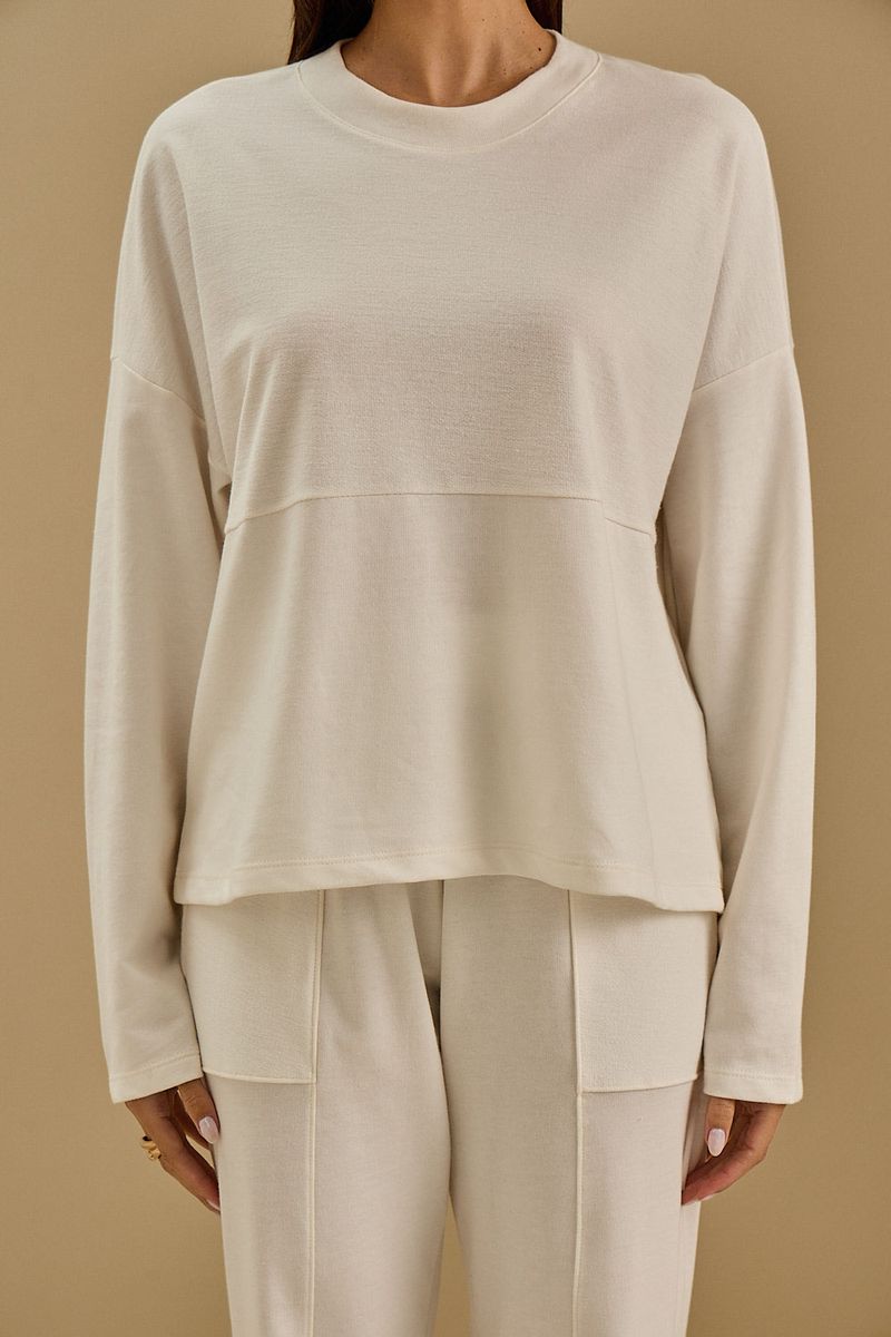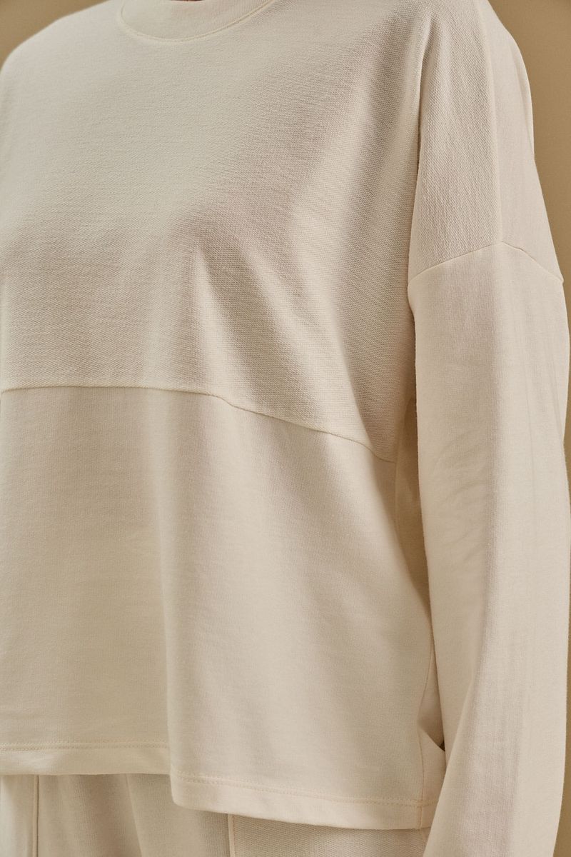 Blusa Maria.Valentina Solta Decote Careca Manga Longa Padrão Off White
