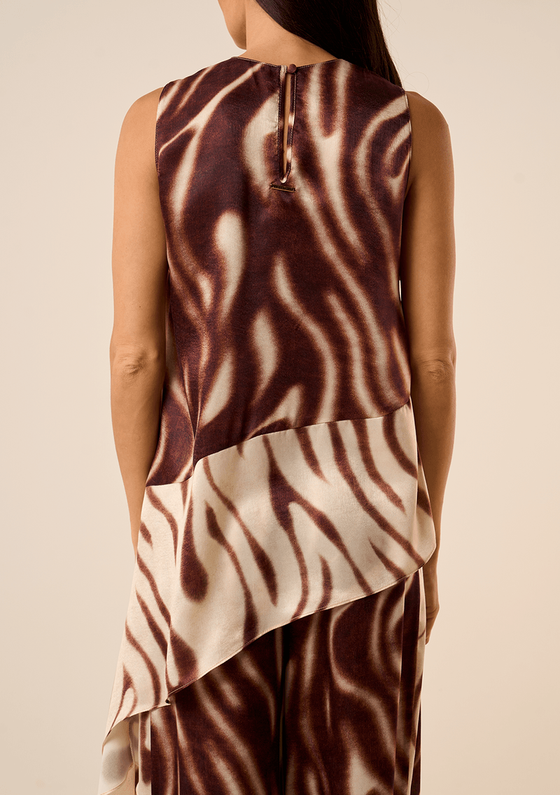 Blusa Maria.Valentina Solta Decote Careca Sem Alça Alongada Marrom