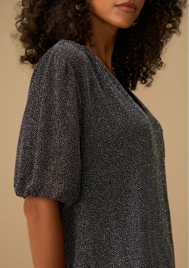 Blusa Maria.Valentina Solta Decote V Manga Curta Cropped Preto