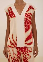 Blusa Maria.Valentina Solta Decote V Manga Curta Padrão Bege