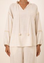 Blusa Maria.Valentina Solta Decote V Manga Longa Padrão Bege