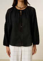 Blusa Maria.Valentina Solta Decote V Manga Longa Padrão Preto
