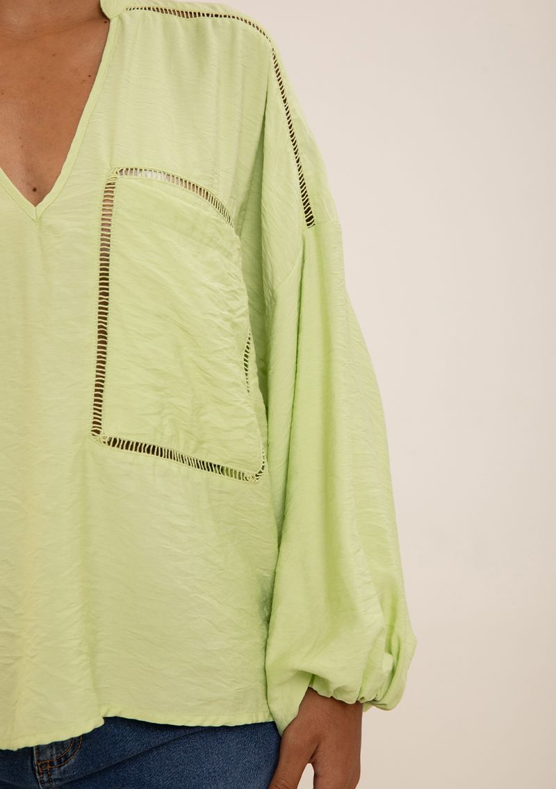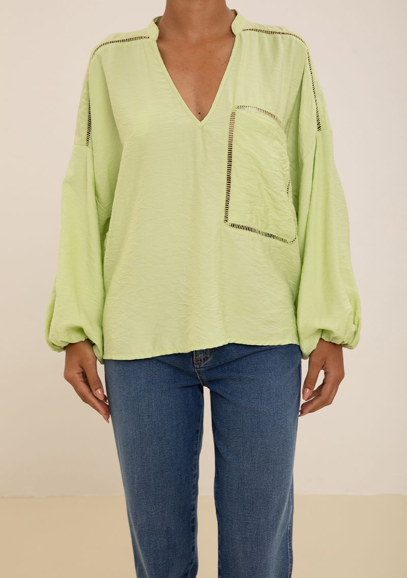 Blusa Maria.Valentina Solta Decote V Manga Longa Padrão Verde