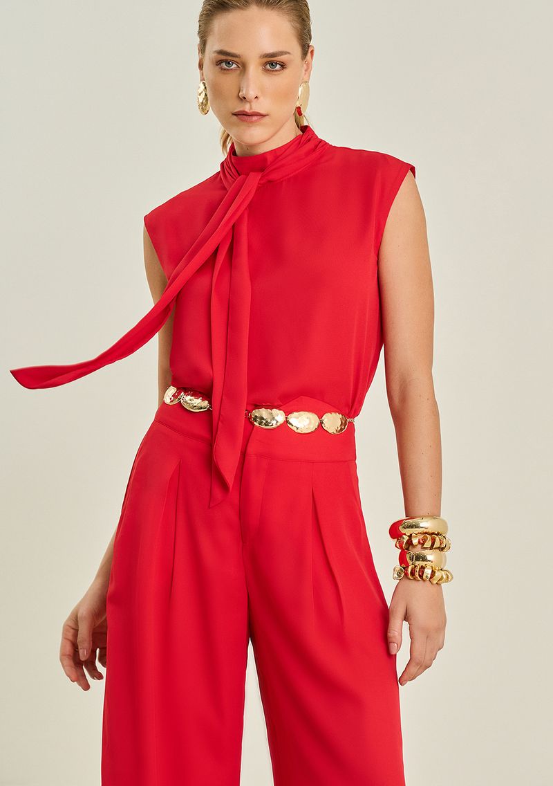 Blusa Maria.Valentina Solta Gola Alta Manga Curta Padrão Vermelho