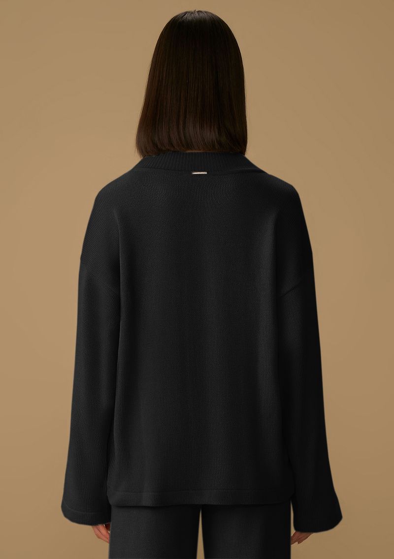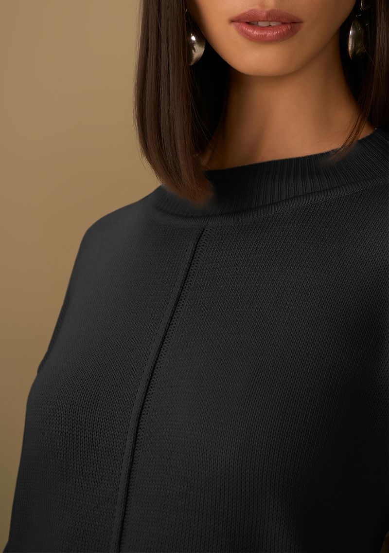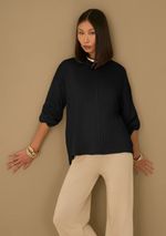Blusa Maria.Valentina Solta Gola Alta Manga Longa Padrão Preto
