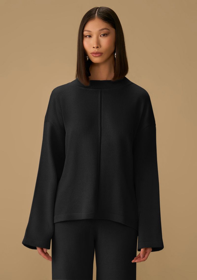FemininoRoupasBlusasBlusa Maria.Valentina Solta Gola Alta Manga Longa Padrão Preto