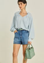 Blusa Maria.Valentina Solta Gola Padre Manga Longa Padrão Azul
