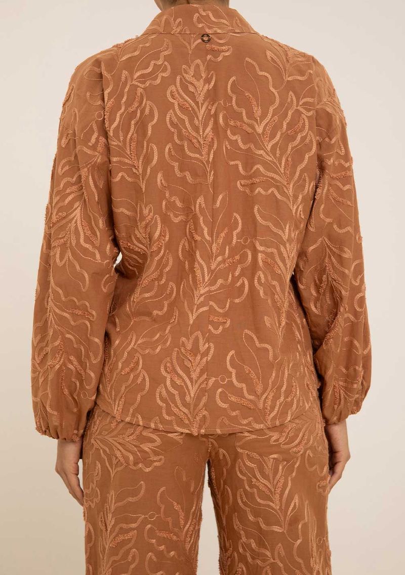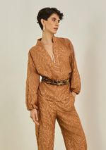 Blusa Maria.Valentina Solta Gola Padre Manga Longa Padrão Marrom