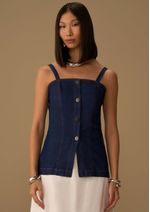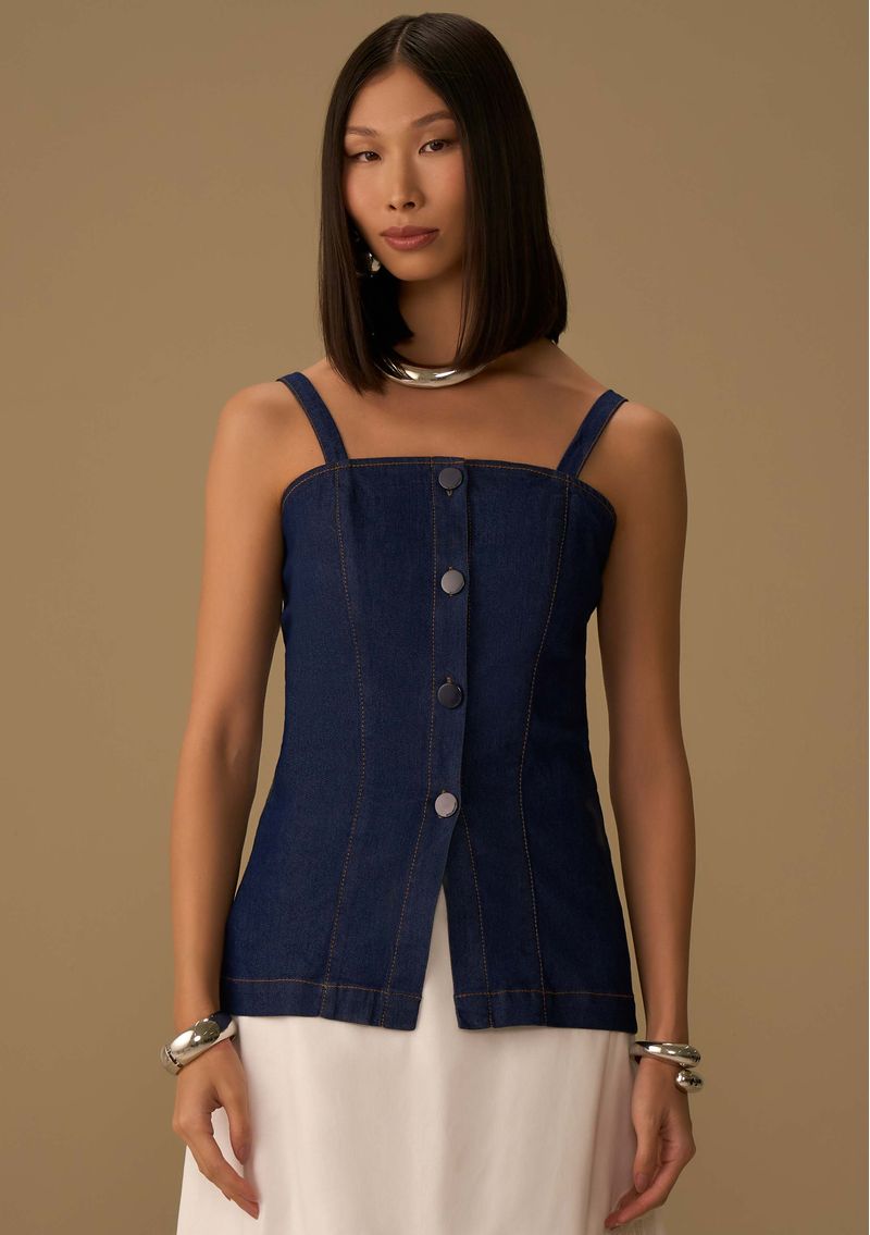 OUTLETFemininoRoupasBlusasBlusa Maria.Valentina Solta Ombro A Ombro Manga Curta Alongada Azul