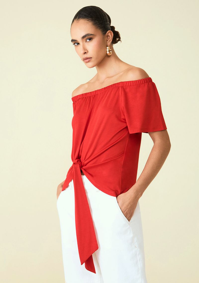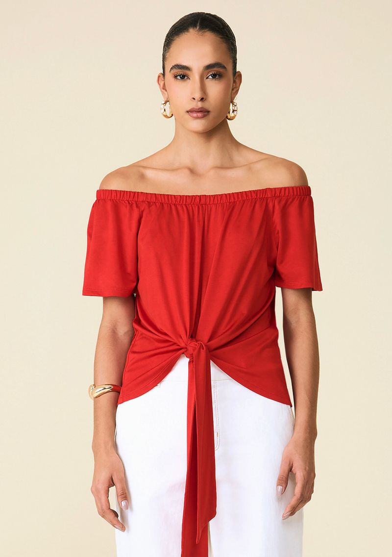 OUTLETFemininoRoupasBlusasBlusa Maria.Valentina Solta Ombro A Ombro Manga Curta Padrão Vermelho