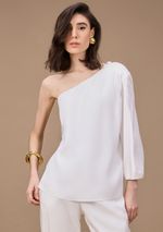 Blusa Maria.Valentina Solta Um Ombro Só Manga Longa Padrão Off White