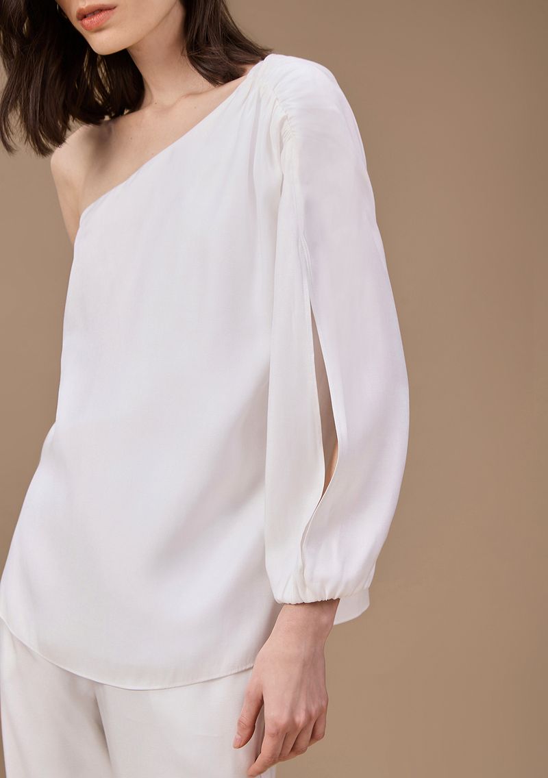 OUTLETFemininoRoupasBlusasBlusa Maria.Valentina Solta Um Ombro Só Manga Longa Padrão Off White