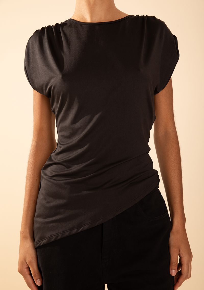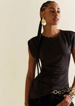 FemininoRoupasBlusasBlusa Morena Rosa Ajustada Decote Careca Manga Curta Cropped Preto