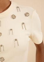 Blusa Morena Rosa Ajustada Decote Careca Manga Curta Padrão Off White