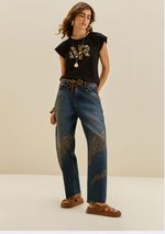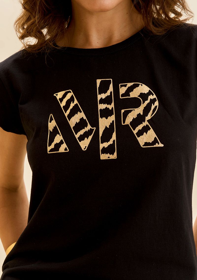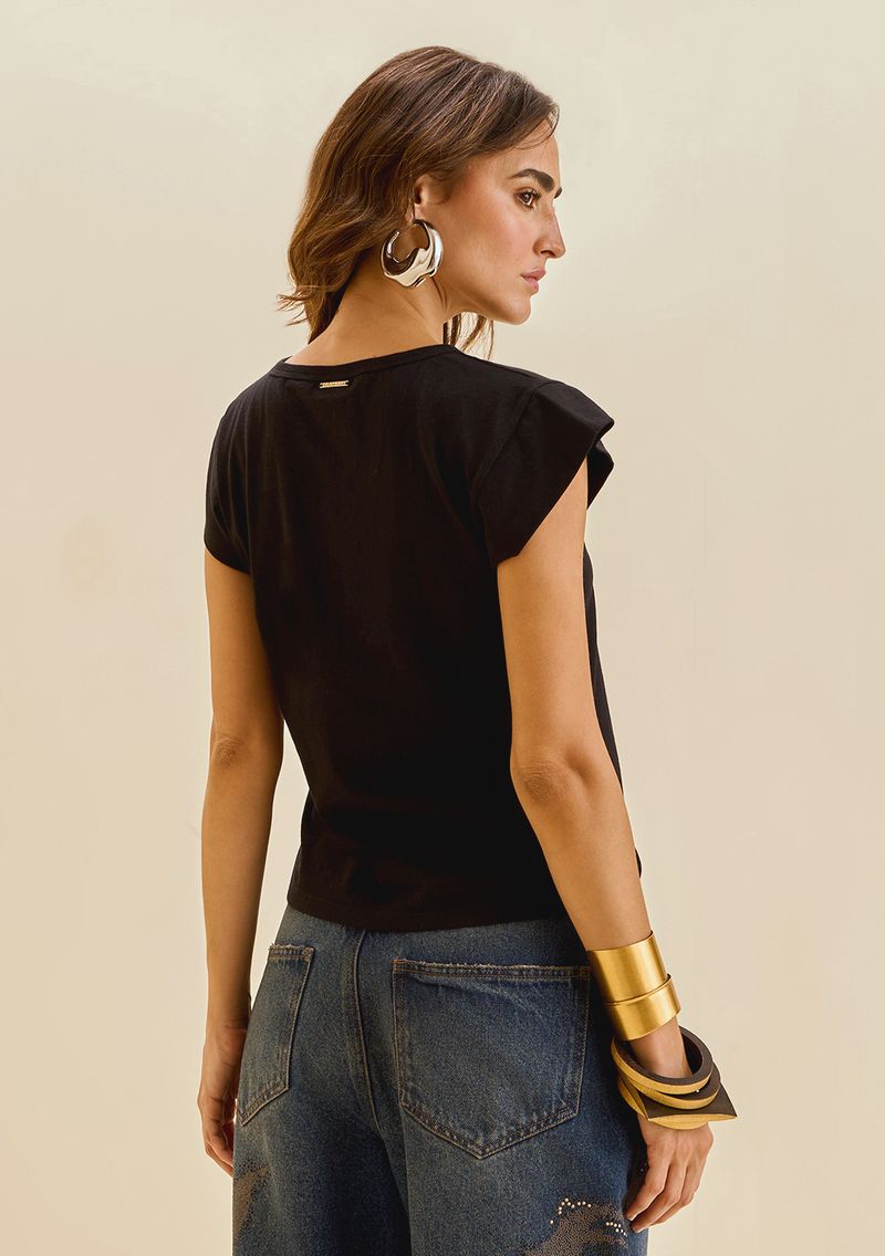 Blusa Morena Rosa Ajustada Decote Careca Manga Curta Padrão Preto