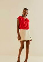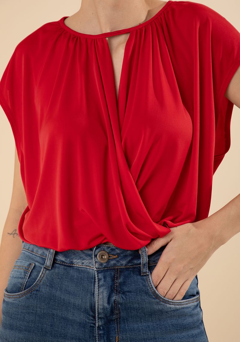 Blusa Morena Rosa Ajustada Decote Transpassado Manga 3 Quartos Cropped Vermelho
