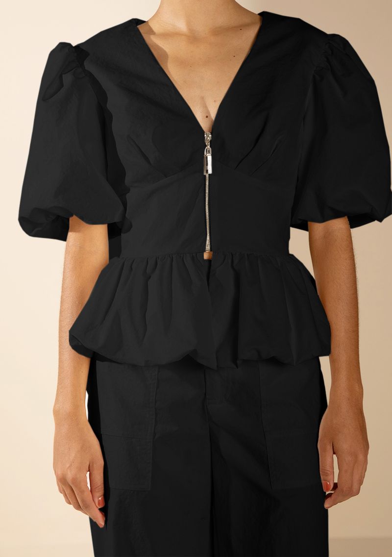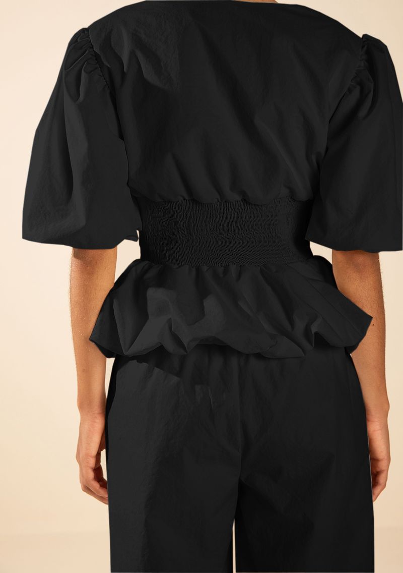 FemininoRoupasBlusasBlusa Morena Rosa Ajustada Decote V Manga Curta Padrão Preto