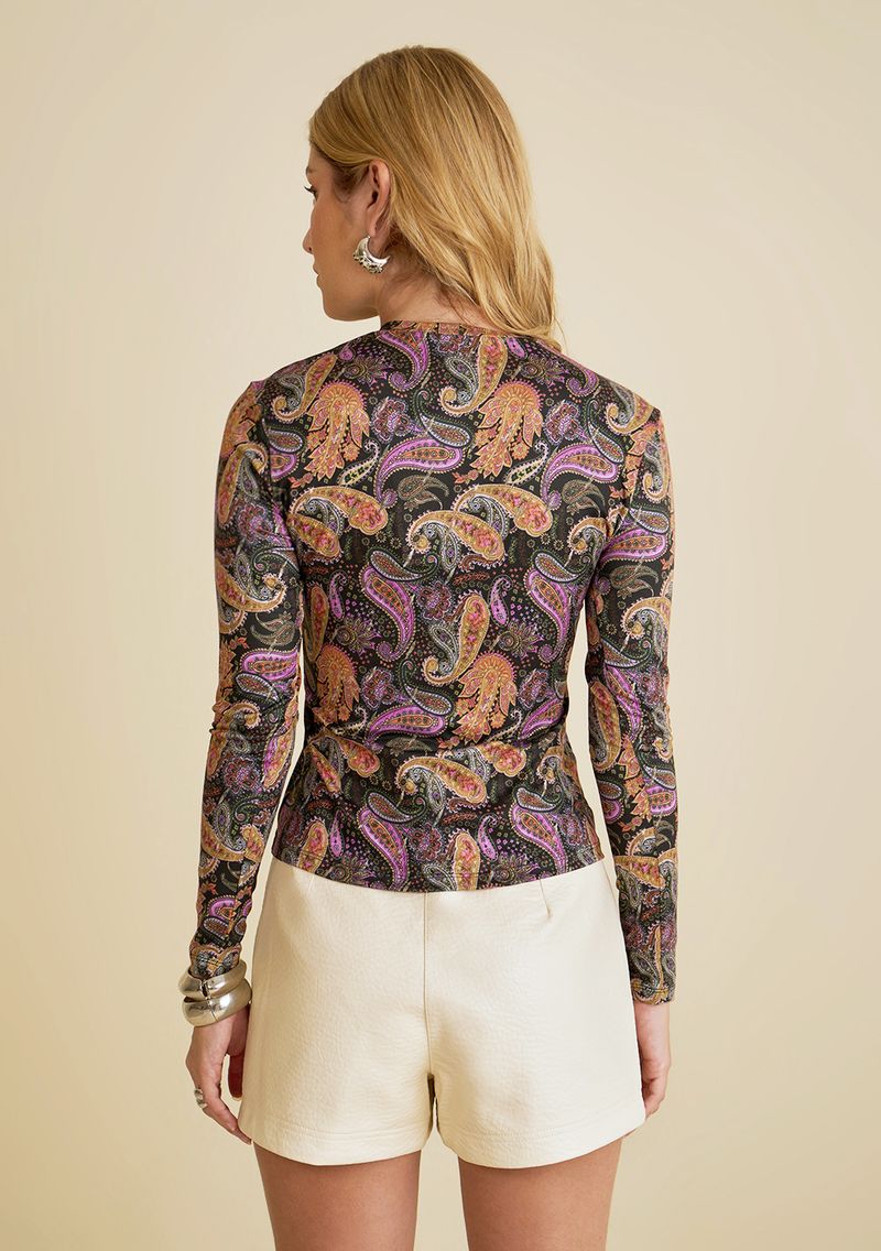 Blusa Morena Rosa Ajustada Gola Alta Manga Longa Padrão Preto