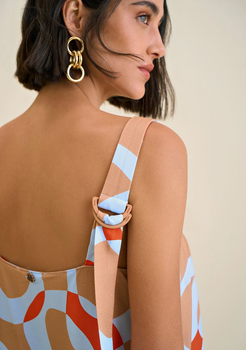 Blusa Morena Rosa Decote Quadrado Alça Detalhe Alça Bege