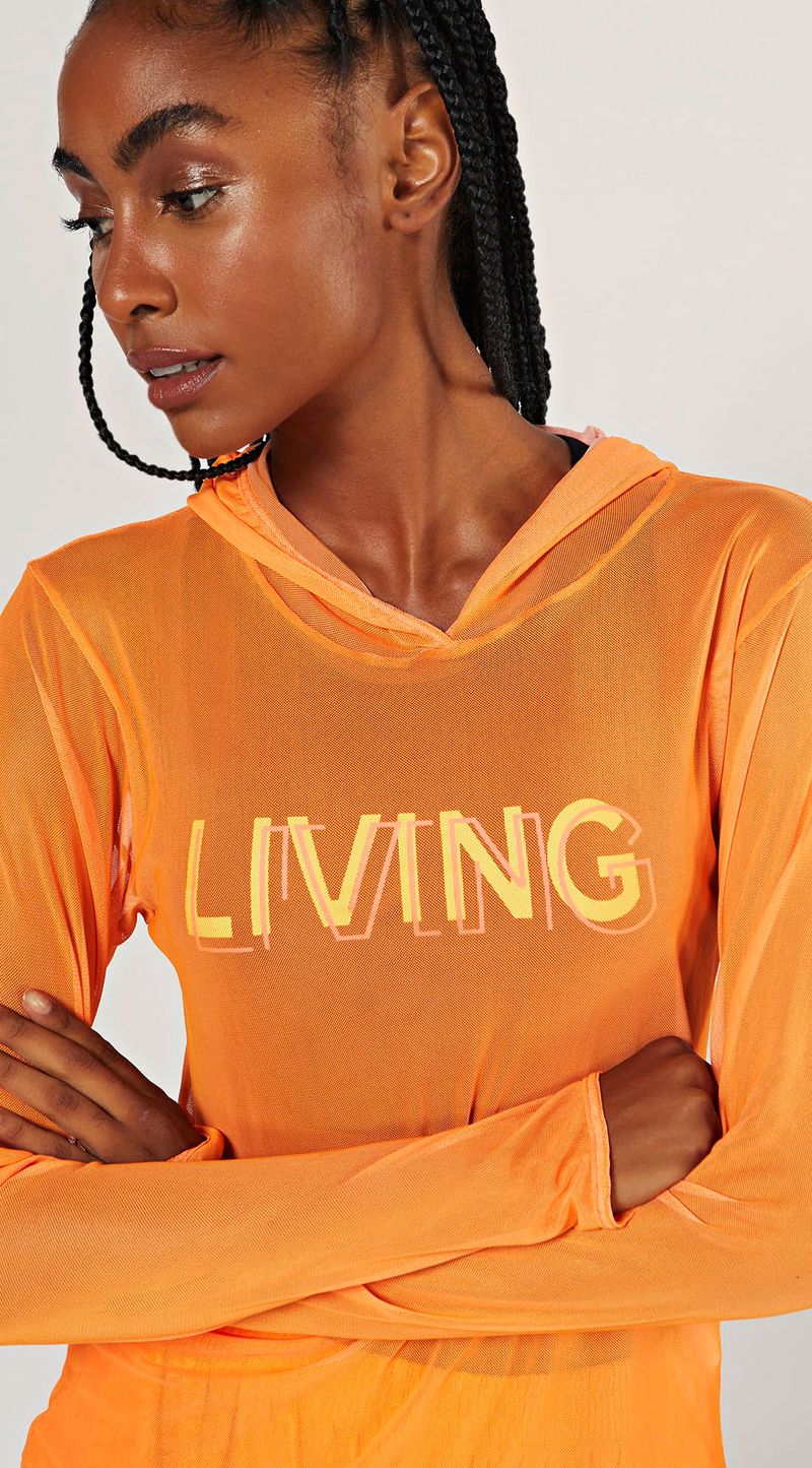 OUTLETFemininoFitnessBlusasBlusa Morena Rosa Decote Redondo Manga Longa Com Capuz Laranja