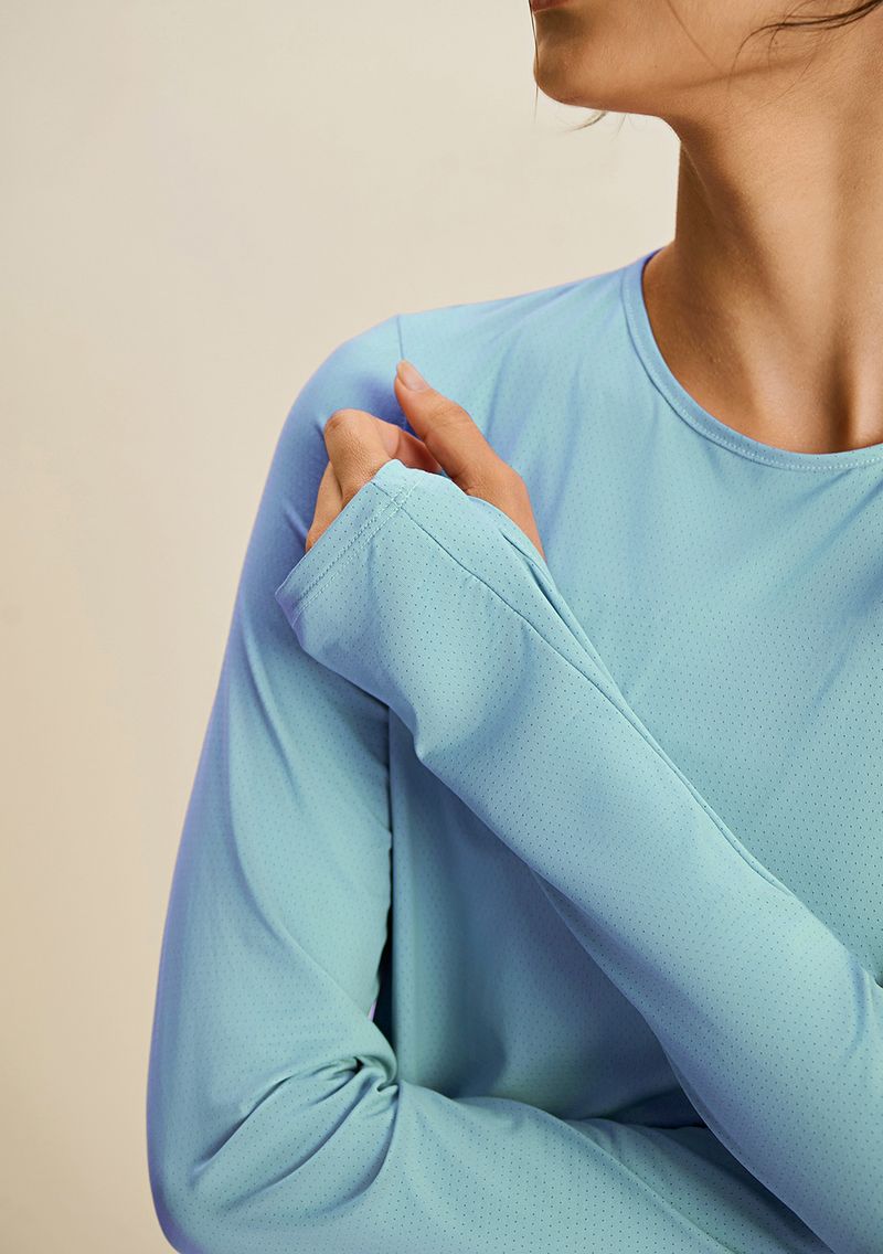 Blusa Morena Rosa Decote Redondo Manga Longa Dry Fit Azul