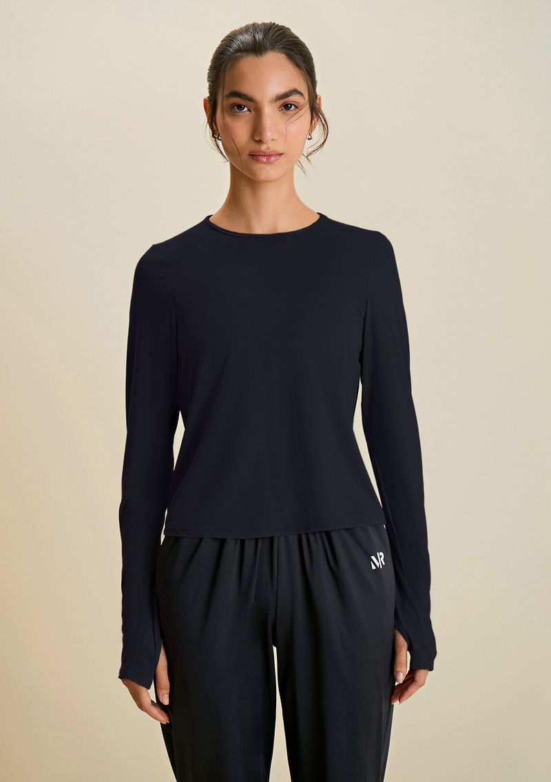 Blusa Morena Rosa Decote Redondo Manga Longa Dry Fit Preto