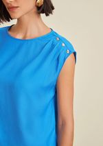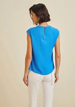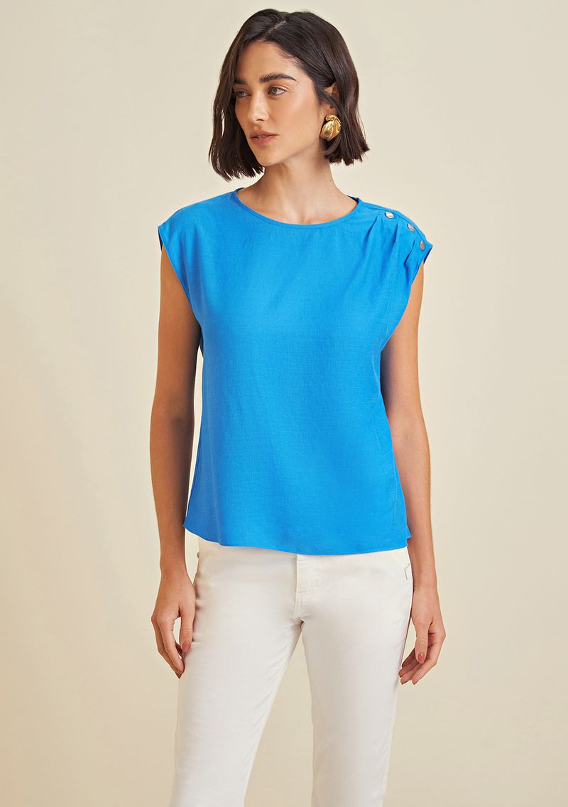 OUTLETFemininoRoupasBlusasBlusa Morena Rosa Decote Redondo Sem Manga Detalhe Ombro Azul