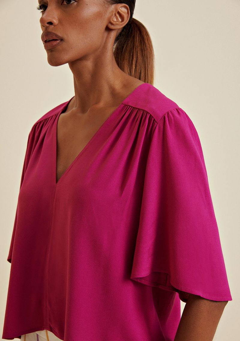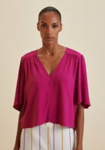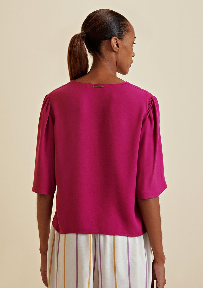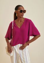 Blusa Morena Rosa Decote V Manga Curta Detalhe Ombro Rosa