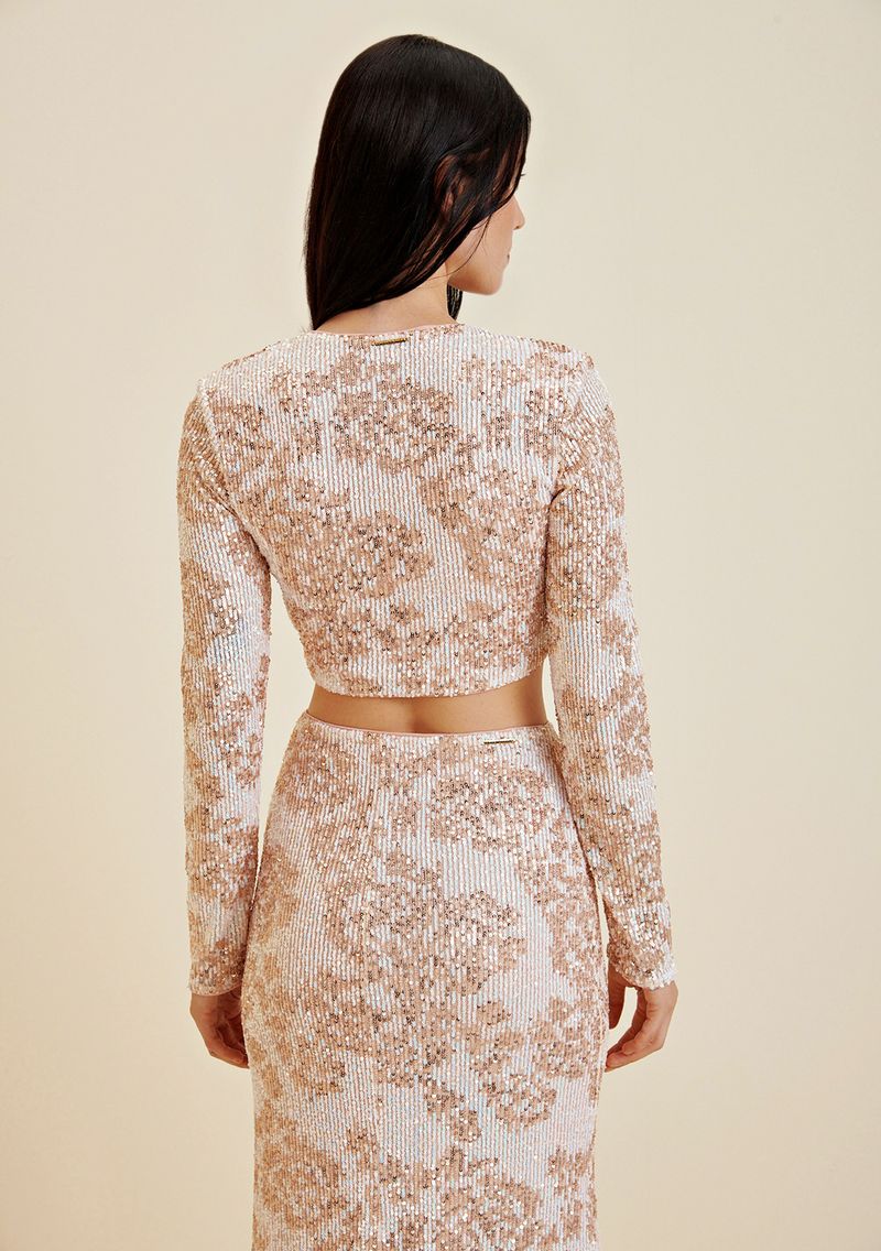 Blusa Morena Rosa Decote V Manga Longa Com Ombreira Rosa