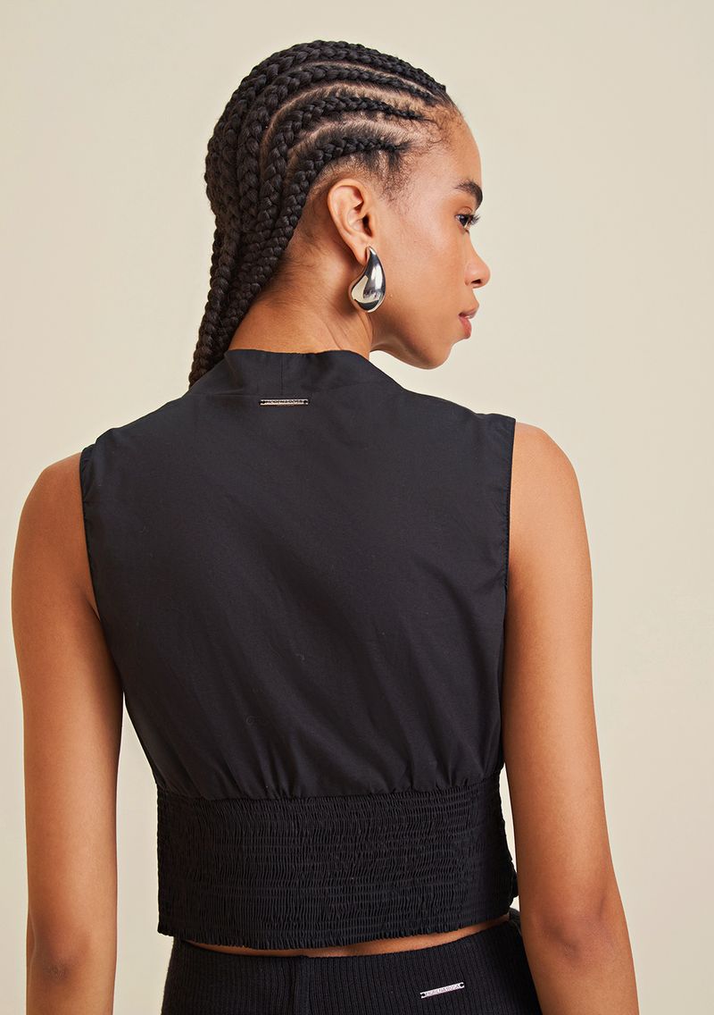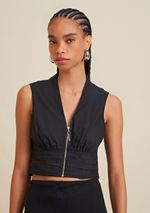 OUTLETFemininoRoupasBlusasBlusa Morena Rosa Decote V Sem Manga Detalhe Zíper Preto