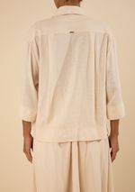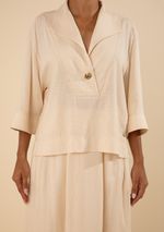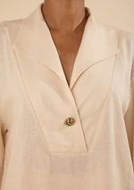 Blusa Morena Rosa Oversized Decote V Manga Curta Padrão Bege