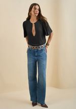 OUTLETFemininoRoupasBlusasBlusa Morena Rosa Solta Decote Careca Manga Curta Padrão Preto