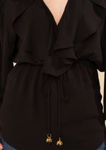 Blusa Morena Rosa Solta Decote Transpassado Manga 7 Oitavos Padrão Preto