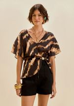 FemininoRoupasBlusasBlusa Morena Rosa Solta Decote Transpassado Manga Curta Padrão Marrom