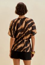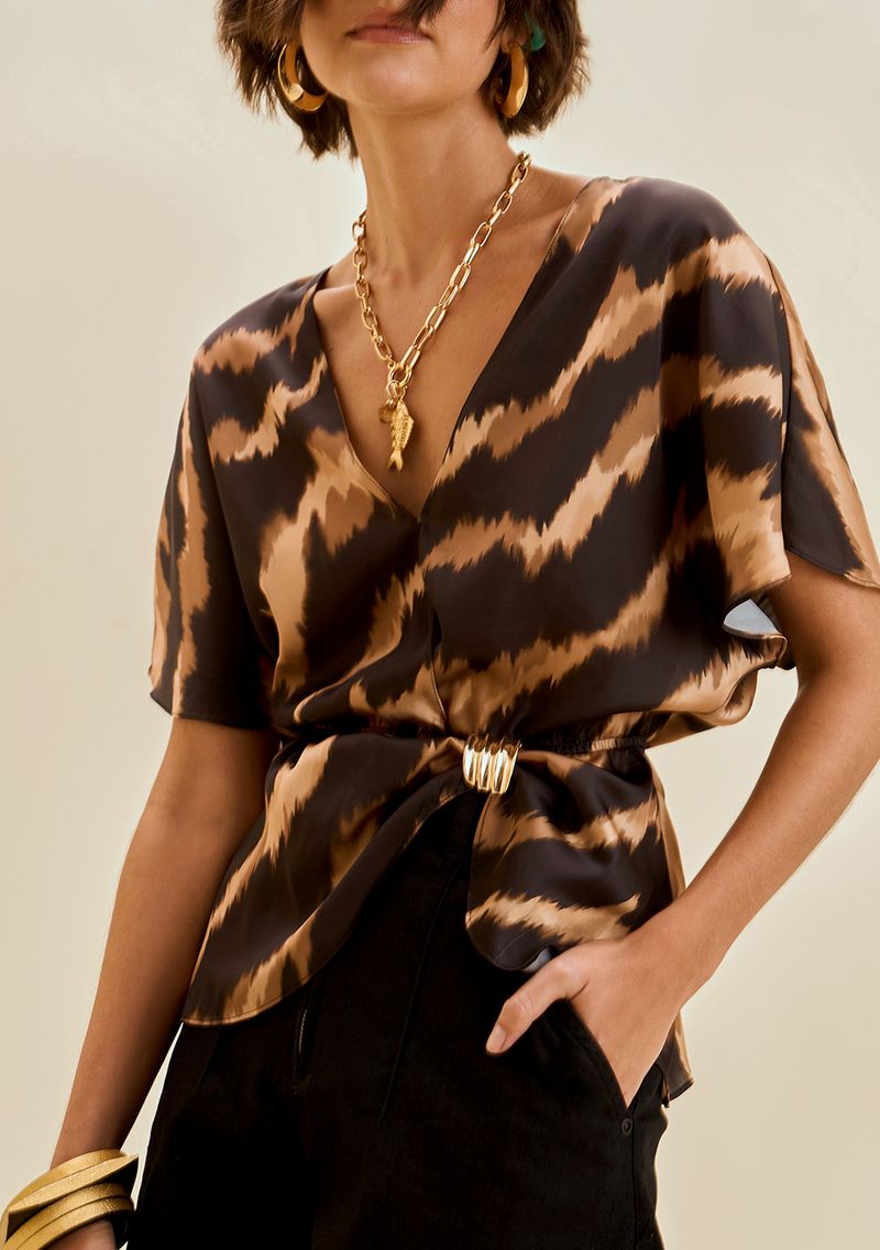 Blusa Morena Rosa Solta Decote Transpassado Manga Curta Padrão Marrom