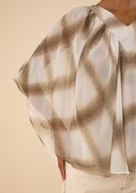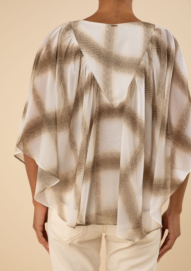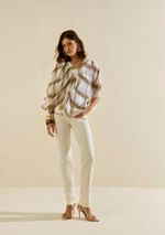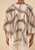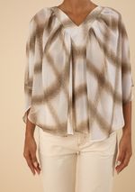 Blusa Morena Rosa Solta Decote V Manga Curta Padrão Bege