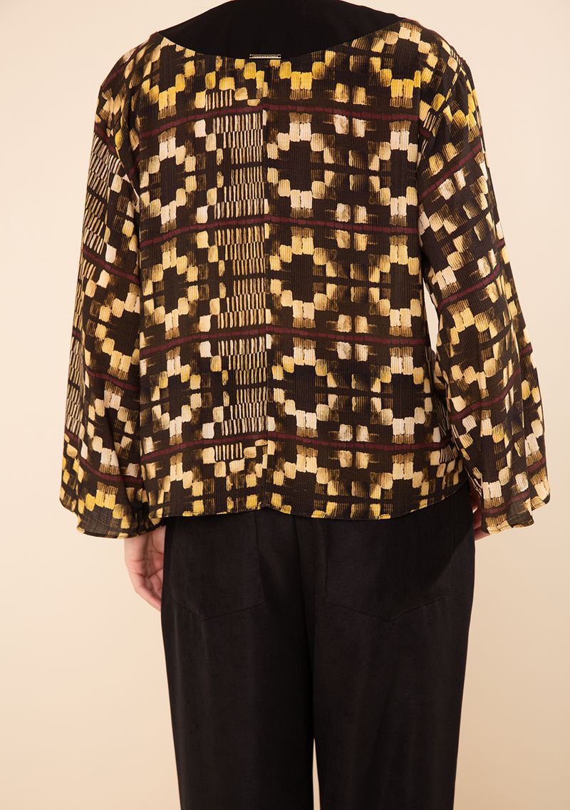Blusa Morena Rosa Solta Decote V Manga Longa Padrão Marrom