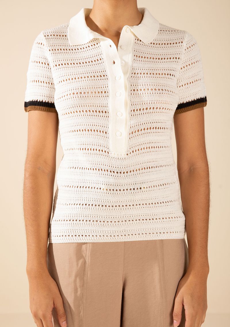 FemininoRoupasBlusasBlusa Morena Rosa Solta Gola Clássica Manga Curta Padrão Off White