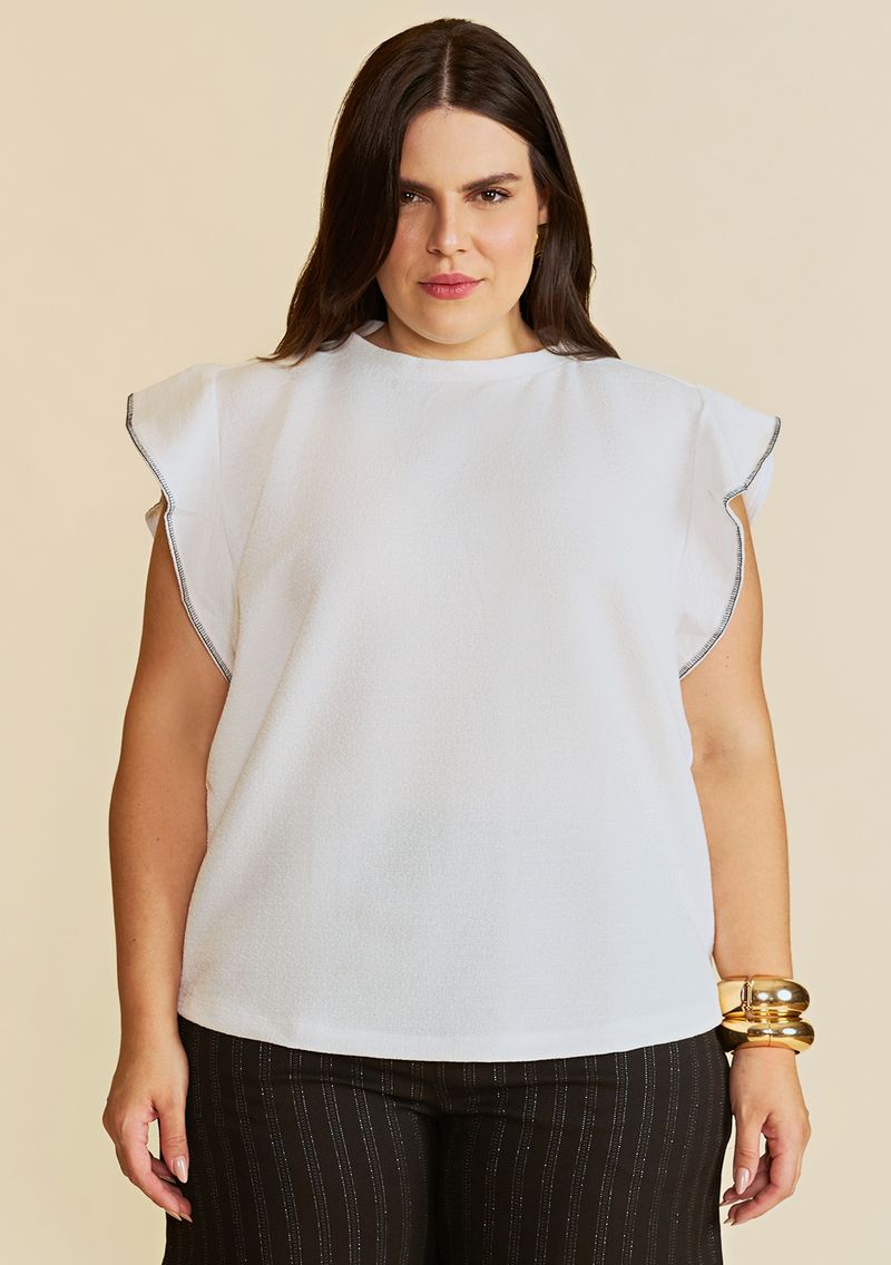 Blusa Solta Decote Careca Manga Curta Padrão Branco