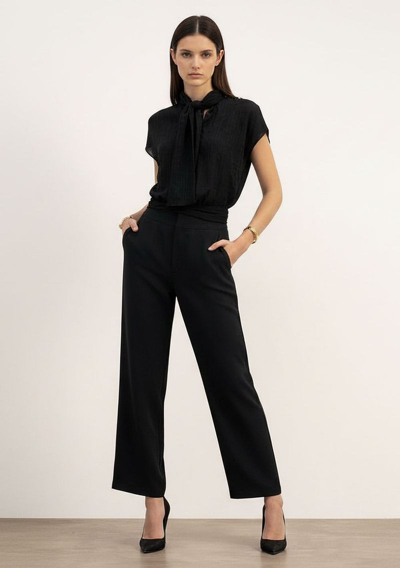 Blusa Solta Gola Alta Manga Curta Cropped Preto