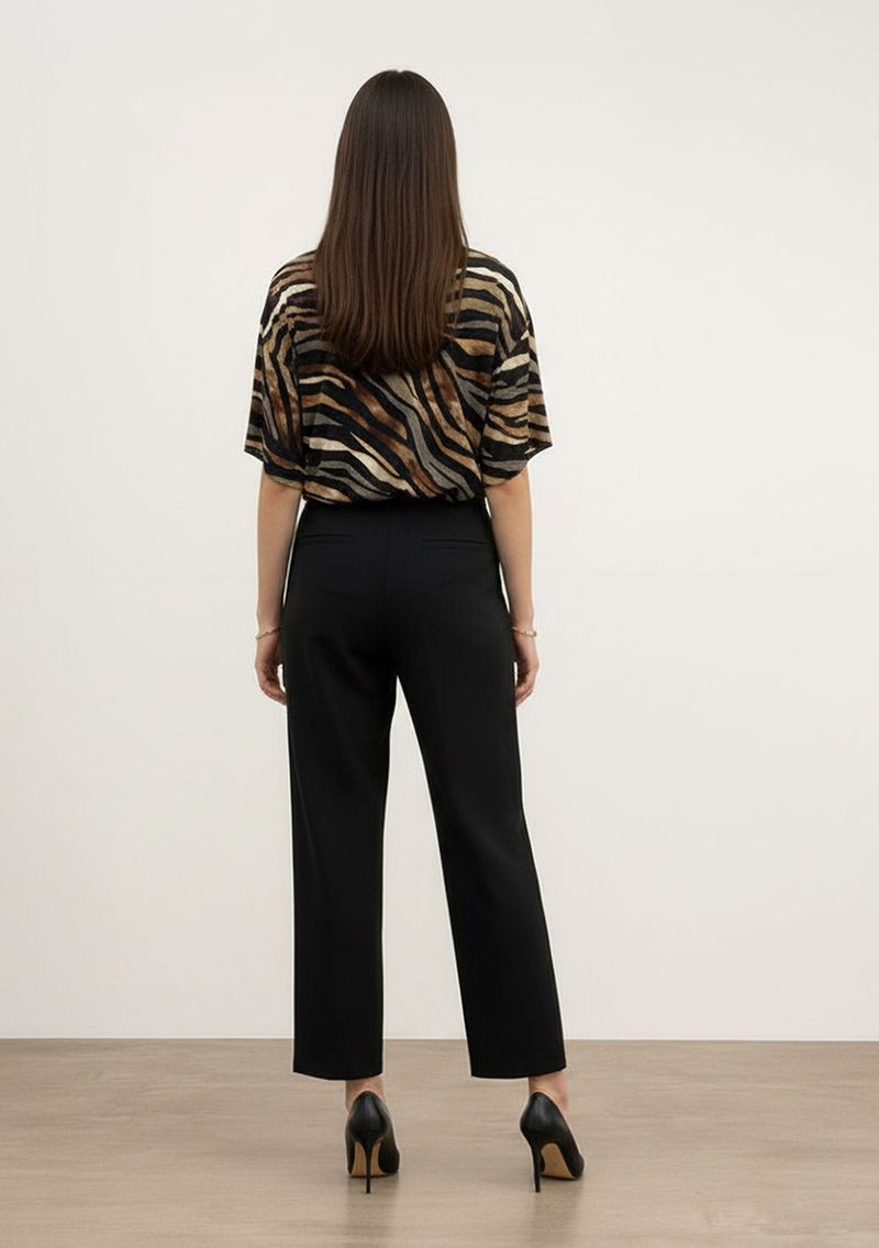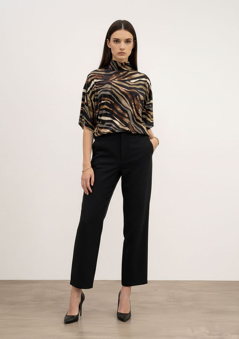 Blusa Solta Gola Alta Manga Curta Padrão Preto
