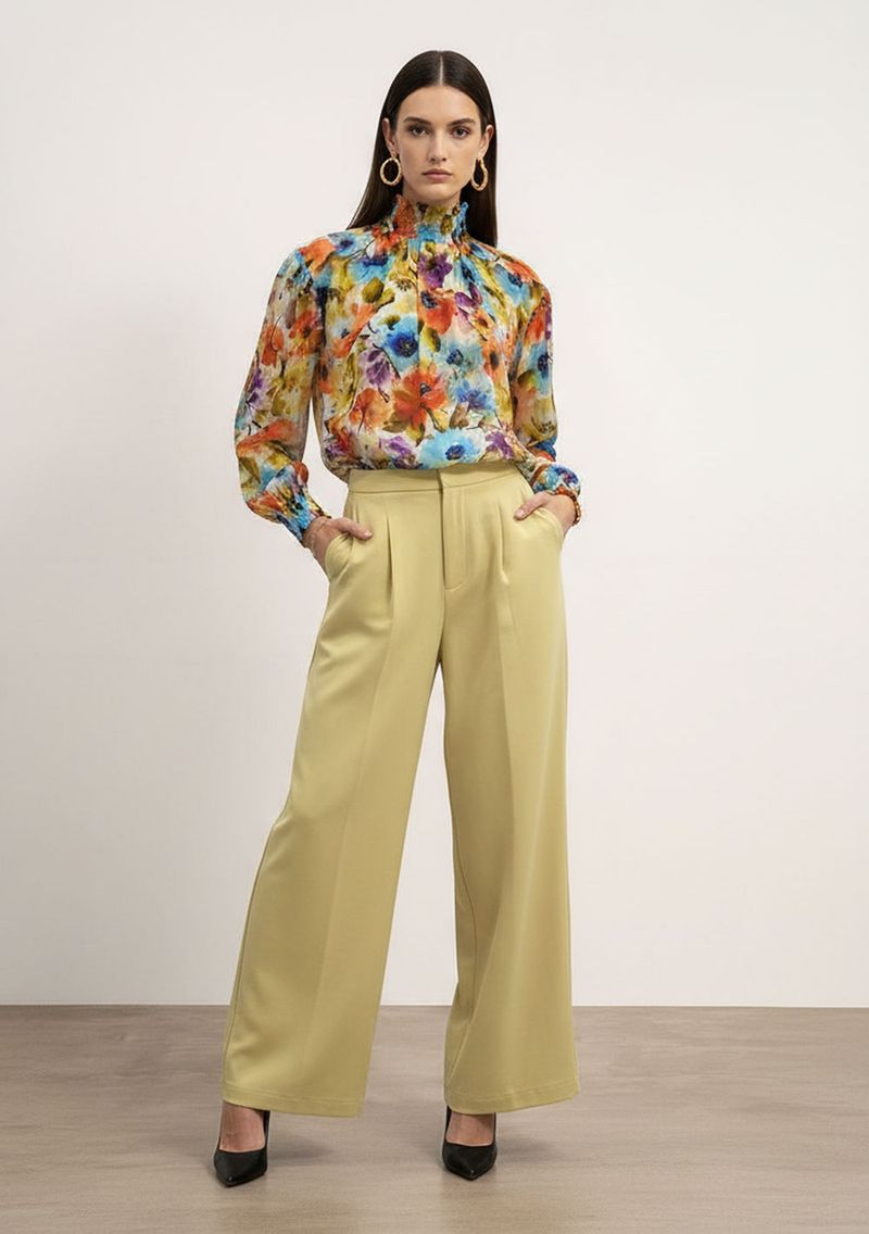 Blusa Solta Gola Alta Manga Longa Padrão Vermelho