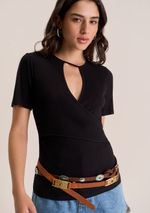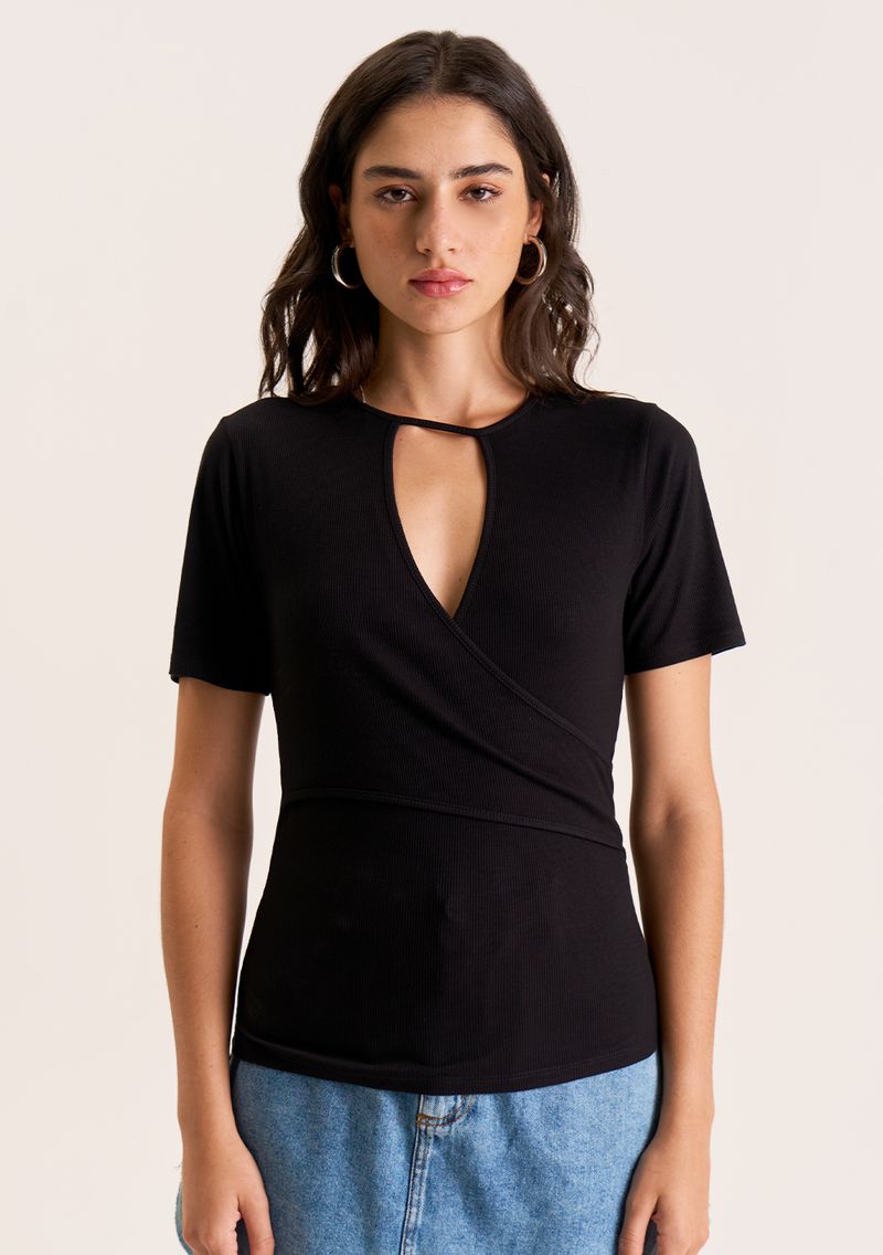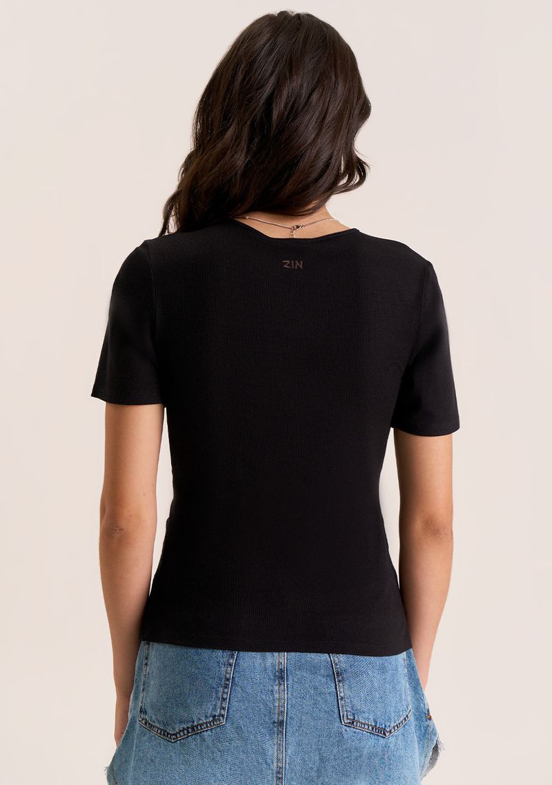 Blusa Zinco Ajustada Decote Careca Manga Curta Padrão Preto